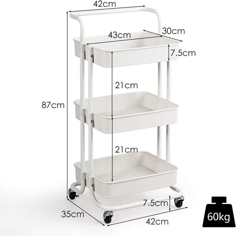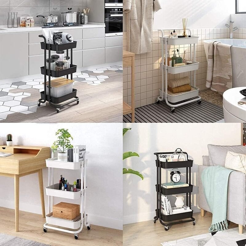- Multifunción: El carrito de almacenamiento no sólo se puede utilizar en la cocina para almacenar verduras, frutas, especias y vajilla, sino que también se puede utilizar en la sala de estar para almacenar aperitivos, libros y artículos diversos. También se puede colocar en el cuarto de baño para almacenar toallas, gel de ducha, cosméticos y artículos de tocador