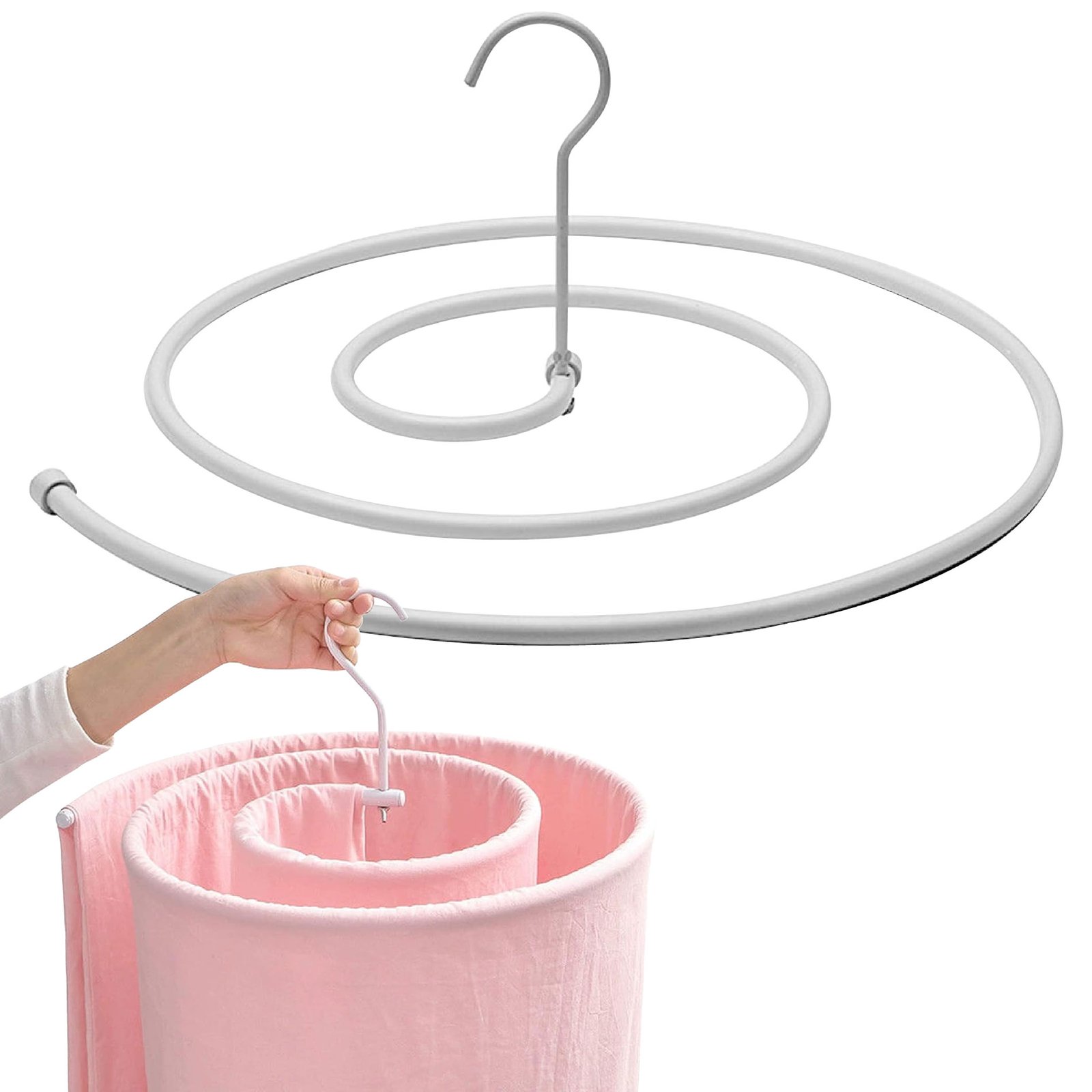 Gancho para lavandería de diseño innovador: el colgador de diseño en espiral ahorra espacio y hace que tus sábanas sean fáciles de secar. Equipado con un gancho especial, se puede colgar en el techo, ocupa poco espacio, y el diseño extraíble hace que sea cómodo de desmontar.