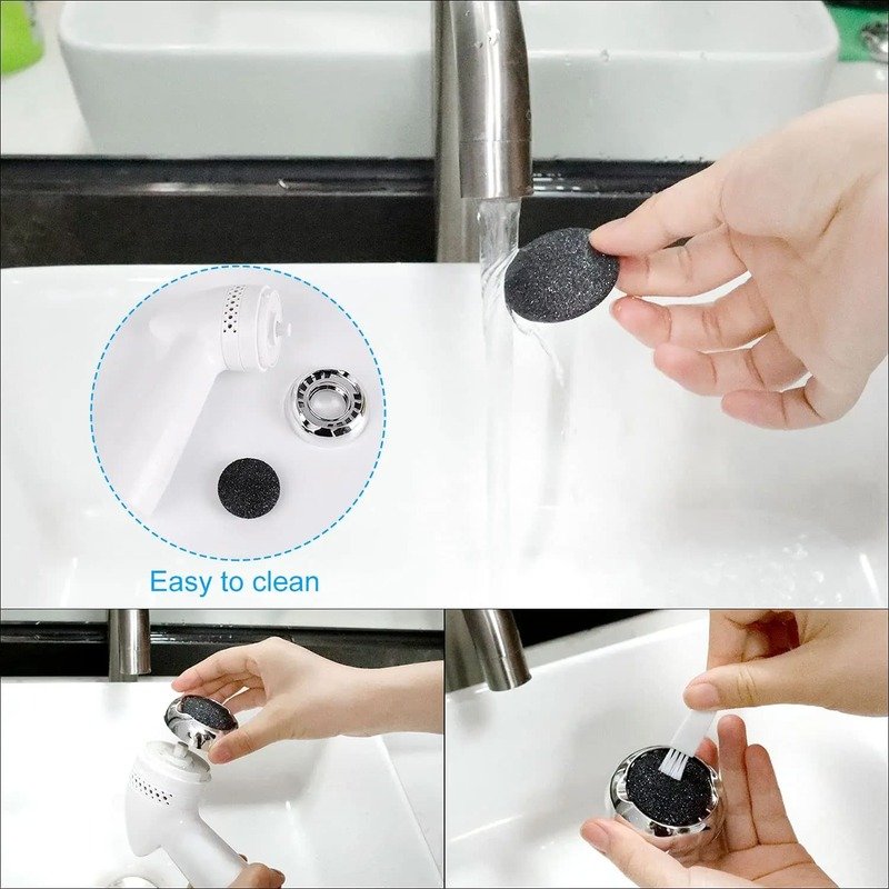 • Rueda de lijado de cuarzo: este removedor de callos para pies tiene 3 cabezales de lijado de arena de cuarzo diferentes, el cabezal de lijado rugosa puede eliminar la piel muerta persistente, el cabezal de lijado medio puede eliminar la piel muerta áspera, el cabezal de lijado fino para el cuidado diario.