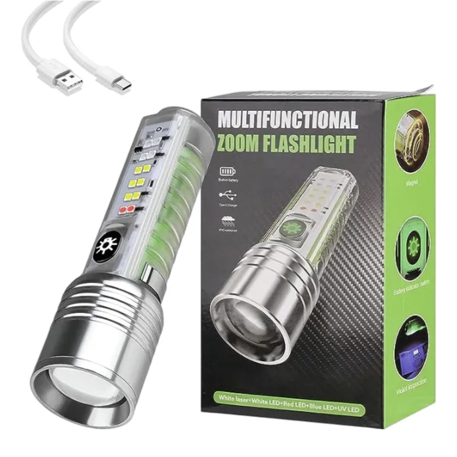 Te permite iluminar cualquier espacio con precisión y adaptarte a distintas situaciones gracias a sus múltiples modos de luz, todo en un solo dispositivo recargable y fácil de llevar.