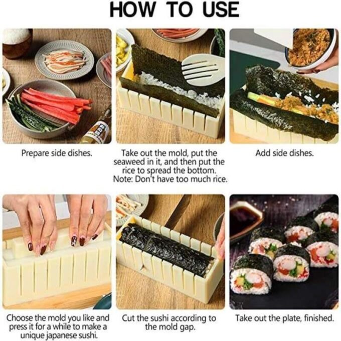 - Fácil de usar y práctico: manual de imagen a color en inglés incluido, simplemente sigue los pasos en el manual, incluso si no tienes ninguna experiencia en la fabricación de sushi, también puedes hacer fácilmente un sushi perfecto con él.