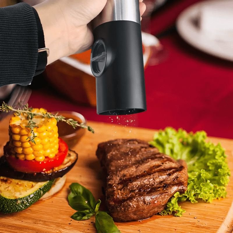 • Adecuado para cocinar o barbacoa. Es fácil de operar incluso con una mano, puedes sazonar tu comida con solo presionar un botón.