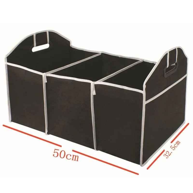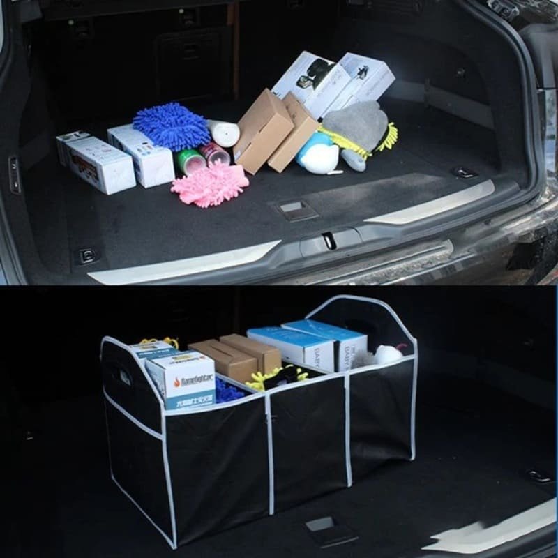- Este organizador de maletero plegable tiene tres grandes secciones que pueden contener artículos deportivos, mochilas, libros, Comestibles o artículos de seguridad.