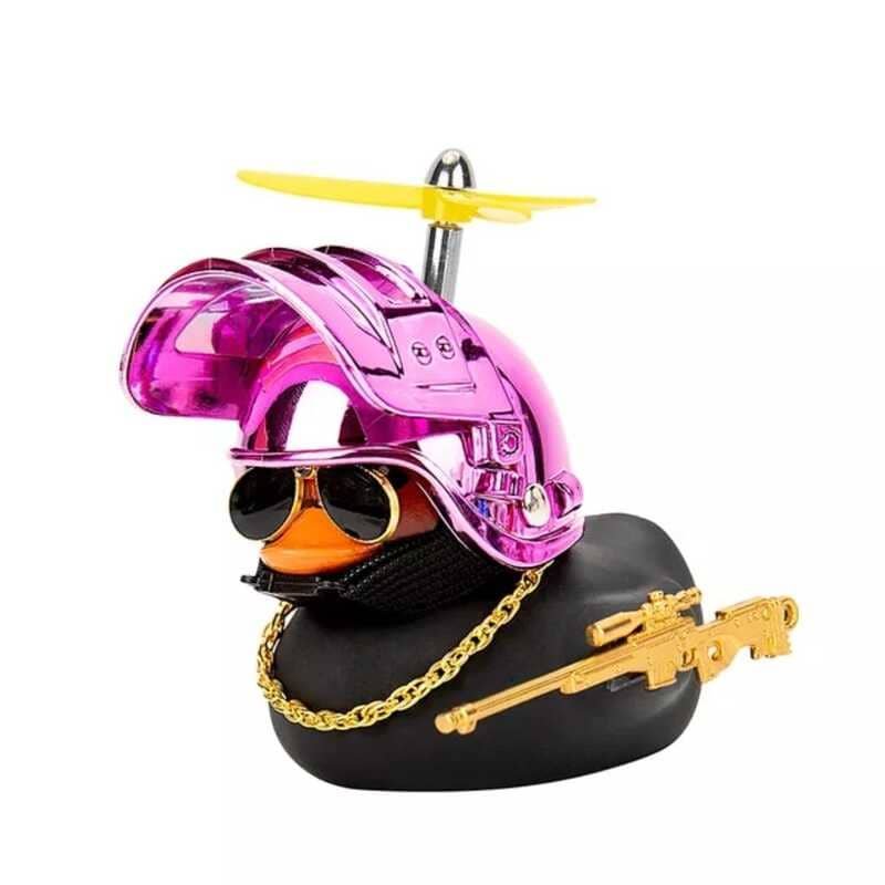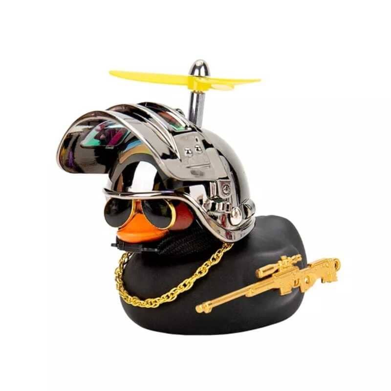 - Bonito y moderno pato negro con casco.