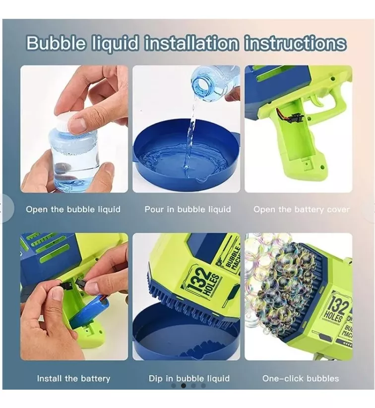 Pistola de juguetes al aire libre: esta pistola de burbujas puede traer un sinfín de diversión y ambiente de ensueño en una serie de actividades como bodas, reuniones familiares, juegos de niños, fiestas de burbujas, piscina de verano, barbacoa, cumpleaños, espectáculos de escenario y otras actividades. Las burbujas para niños pequeños son definitivamente juguetes perfectos para exteriores y regalo ideal para niños pequeños.