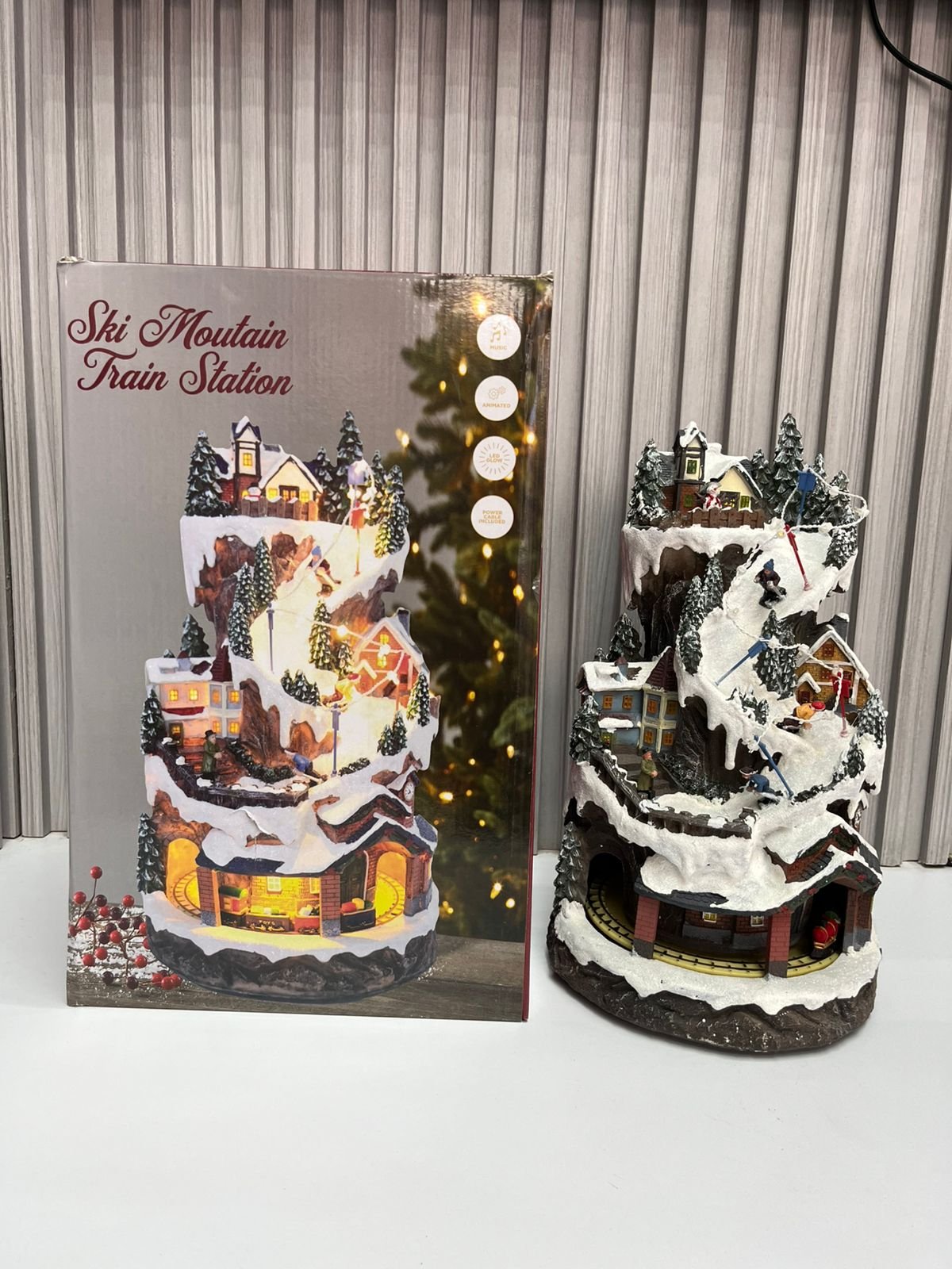 - MAGNIFICA VILLAGE DE NAVIDAD DE VARIOS Niveles: Eleva tu decoración con este pueblo navideño de montaña de 20.5 pulgadas, con un paisaje de montaña completamente detallado, chalets, esquiadores y una estación de tren en movimiento que da vida a la magia de las fiestas.